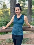This top continually makes our list of best sellers for its comfy fit and stretchy fabric that hugs all the right places. Ruched side panels provide a flattering way to minimize extra tummy bumps and the slightly draped neckline is not cut too low. We recommend this top for casual work attire and layering under a jacket.